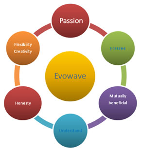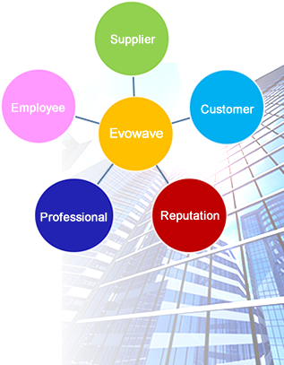 | Evowave understands the importance to operate company as agency & distributor contents with 5 elements, Employees、Supplier、Customer、Reputation and Profession. Without each of element, we could not lead the business to be success. Employee is our precious asset, however without targeting to right customers. Asset will become non-valuable. Neither with supplier. We manage our staff as principle of empowerment & involvement. We also make the people had mind of devote and back feed which is company’s attitude for our employees. |